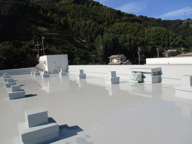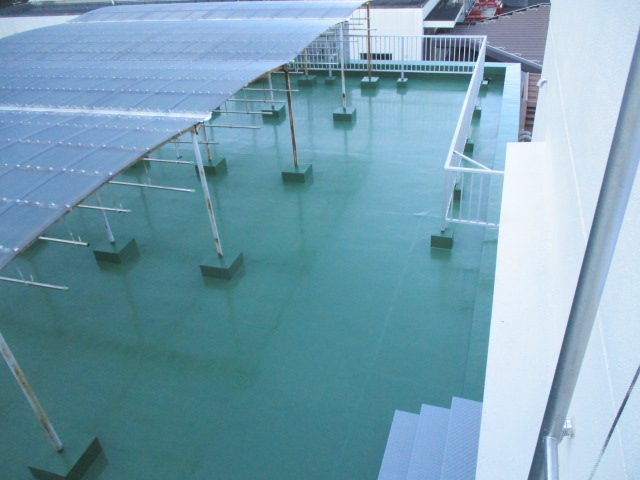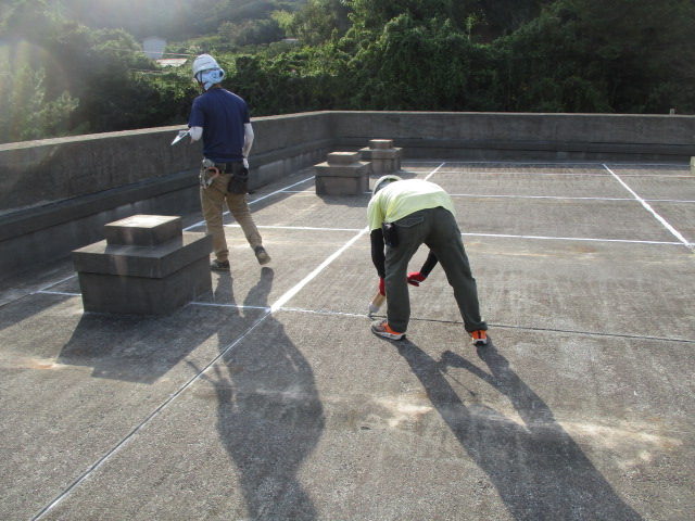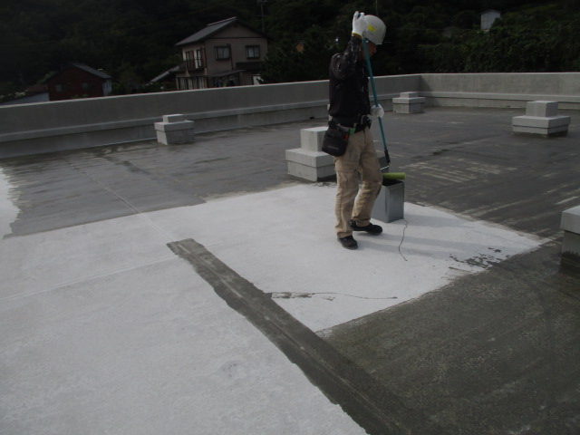 改修工事の内容 工事詳細 場所 静岡市清水区 施工 内容 屋上防水改修工事 使用 材料 日本特殊塗料(株) ウレタン塗膜防水 ブルーフロンエコDX 築年数 期間 2020/8~2020/12 担当者からのコメント 屋上にあった古い太陽光パネルを全て撤去後 シンダーコンクリートの上に ウレタン塗膜防水 通気緩衝工法を行いました。 立上りは下地が悪く 丁寧に処理をして施工しました。 完成度はかなり高い仕上がりで30年は 漏水しないでしょう。 施工前 施工中 施工後