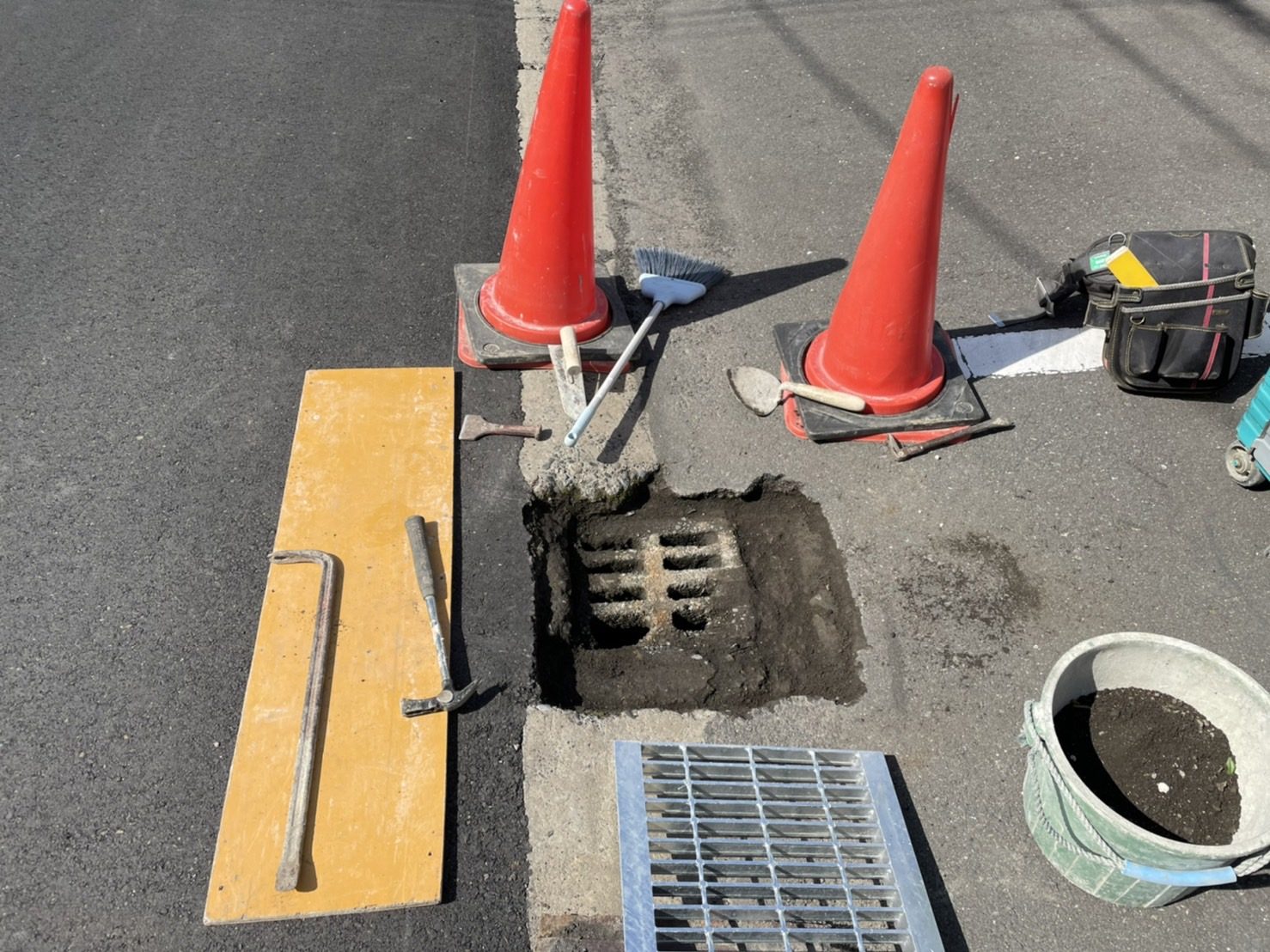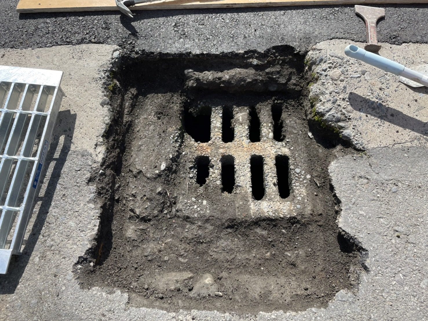 塗装リフォーム工事の内容 場所 静岡市 葵区 施工内容 グレーチング補修工事 使用材料 スチールグレーチング U字溝用 築年数 30年程度 工事期間 1週間 道路の拡張や地盤沈下により グレーチングが曲がってしまい、 車の乗り入れが危険な状態になっている 状態を補修しました。 地盤が平坦ではなくなってしまっていたため 既存のアルファルト・モルタルを除去したうえで均し 車の乗り入れが可能な状態にしました。 施工前 施工中 施工後