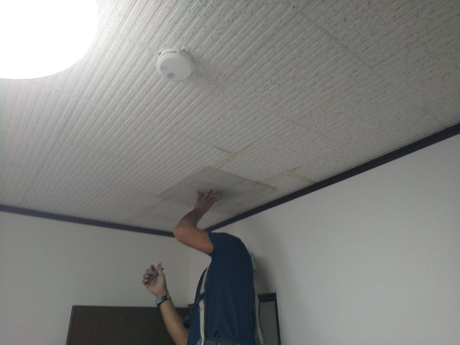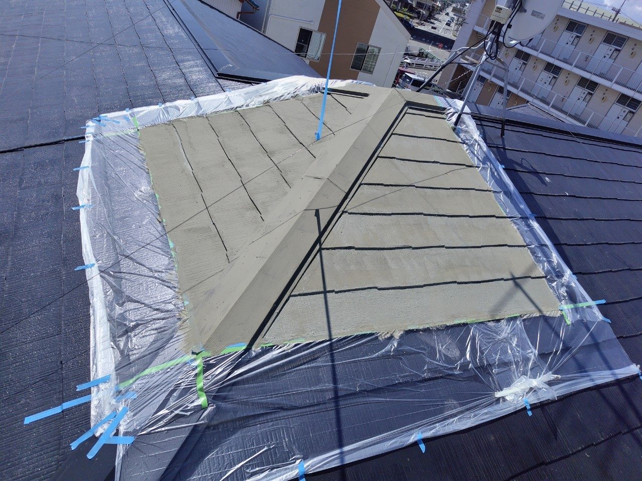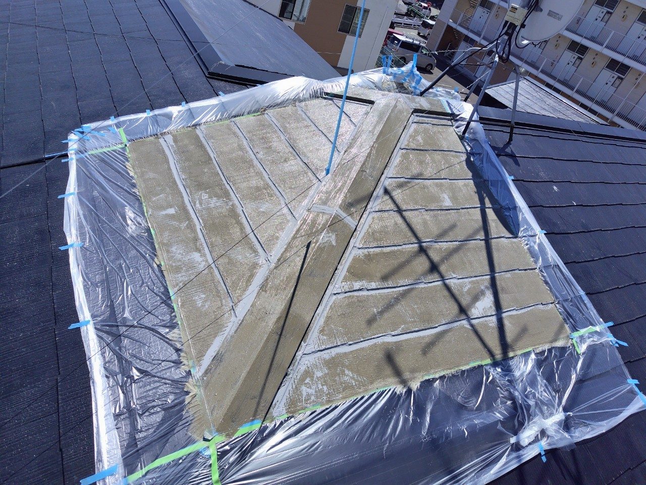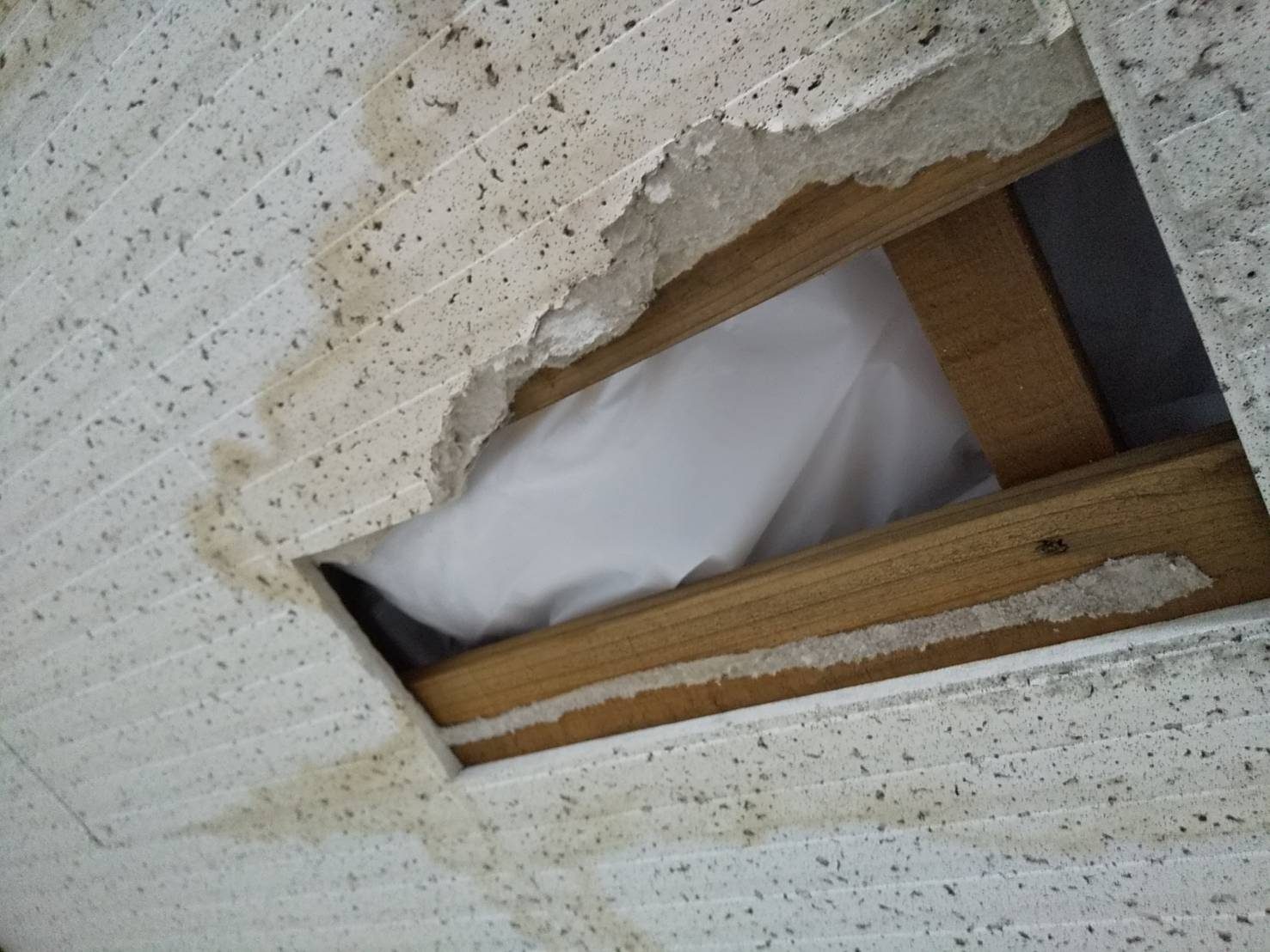 工事の内容 場所 静岡市葵区 施工内容 防水工事 使用材料 ウレタン防水 築年数 30年 工事期間 3週間 スレート屋根から漏水が発生したとのことで現状を確認しました。 屋根に不具合が確認されなかったため、下地の防水層が破損していると判断しました。 ただ、部分的な漏水だったため、スレート屋根用の防水材を塗布して対応しました。 また今回の漏水部は棟部だったため、地震や地盤の歪みで 今後も応力が発生すると予想し点検できるように点検口を取り付けました。 施工前 施工中 施工後