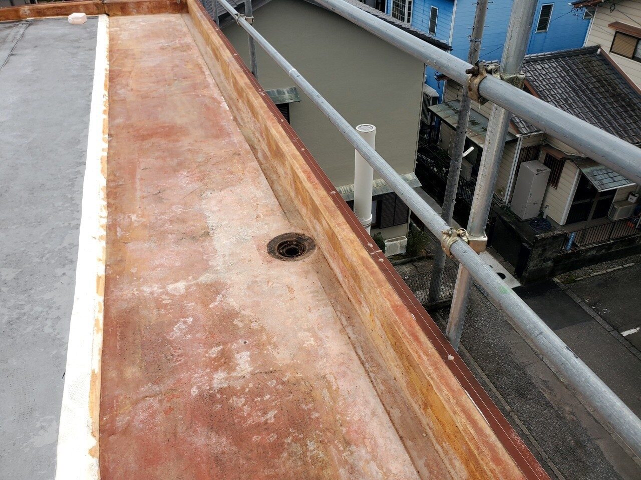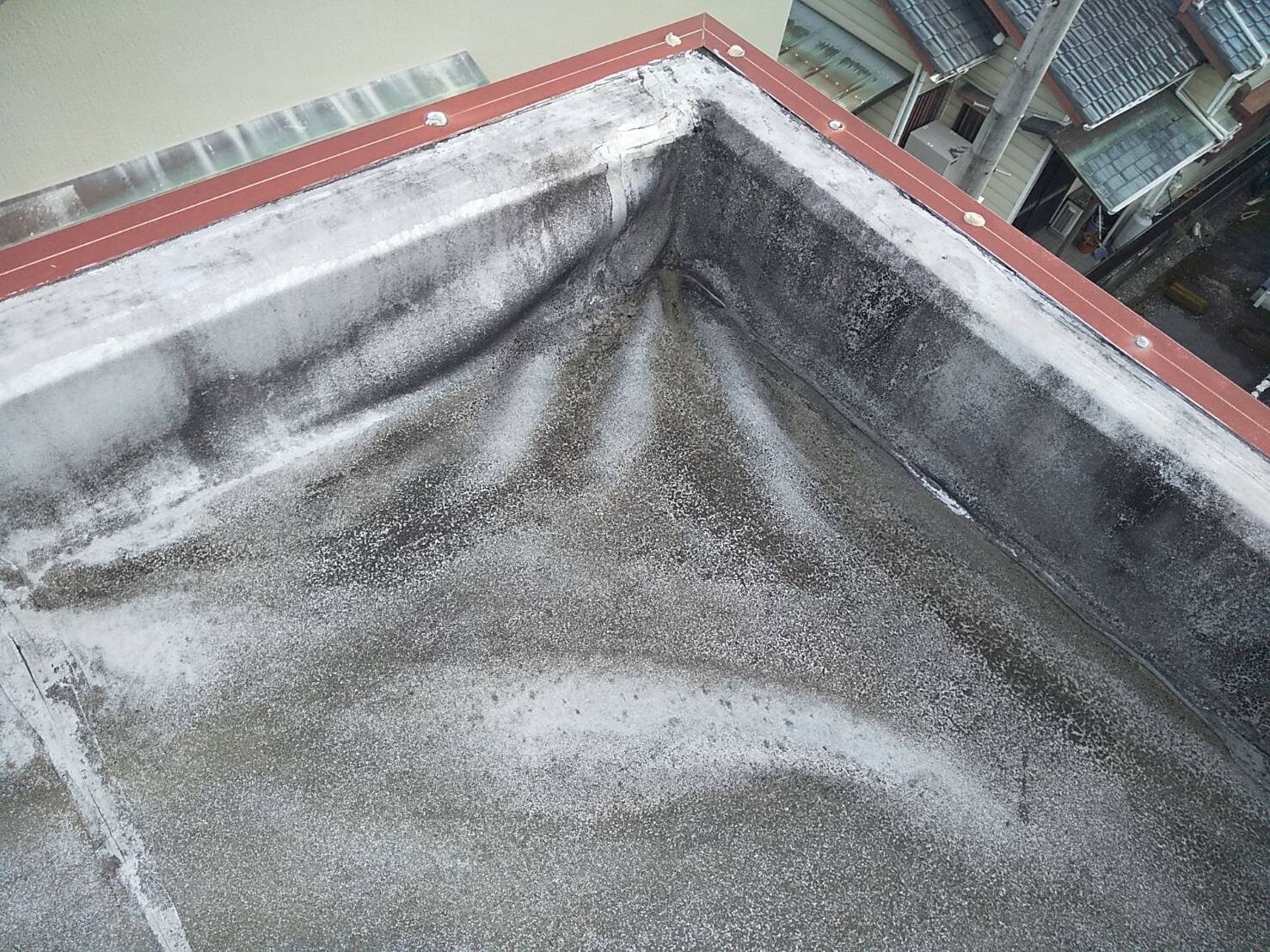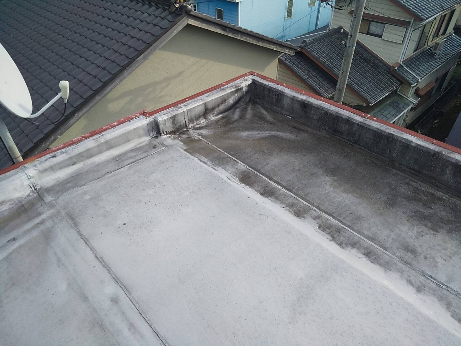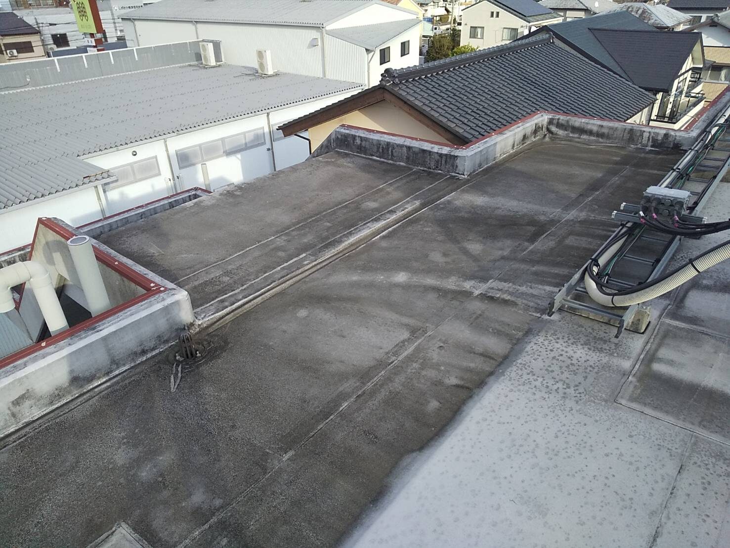 工事の内容 場所 静岡市駿河区 施工内容 屋上防水工事 使用材料 ウレタン防水 築年数 30年 工事期間 1カ月 既存防水層の劣化が確認されたため防水工事のご依頼をいただきました。 施工前 施工中 施工後