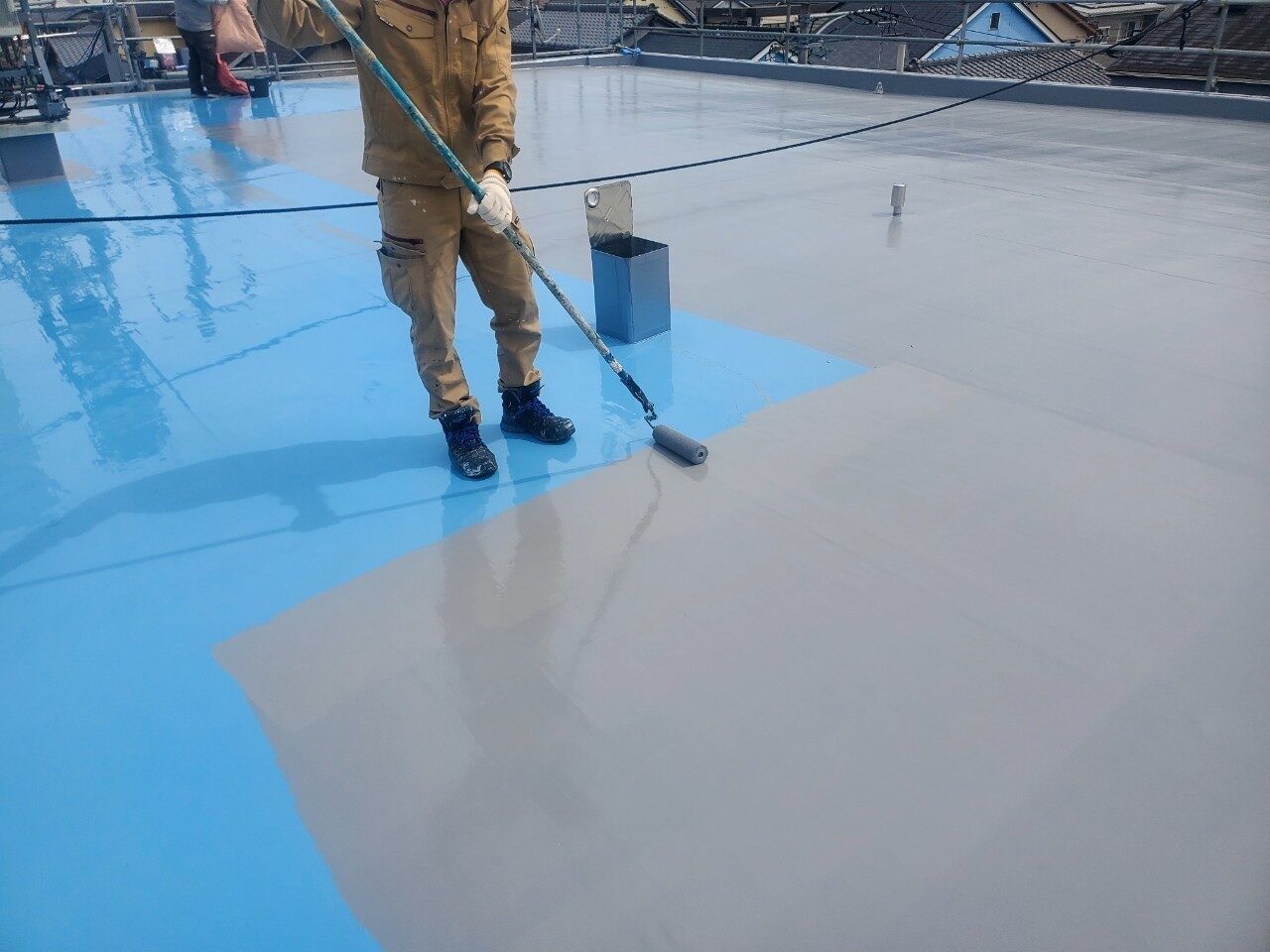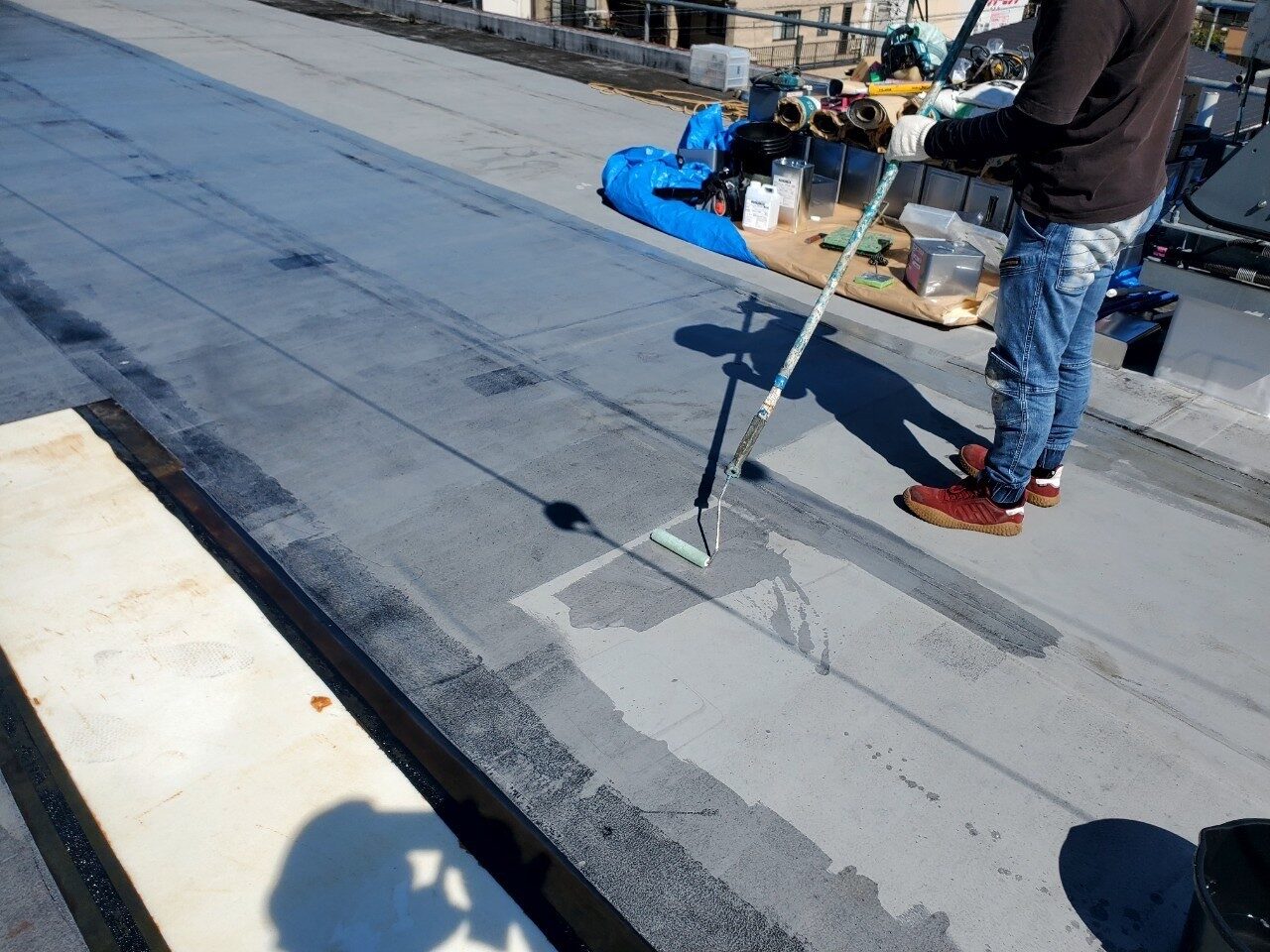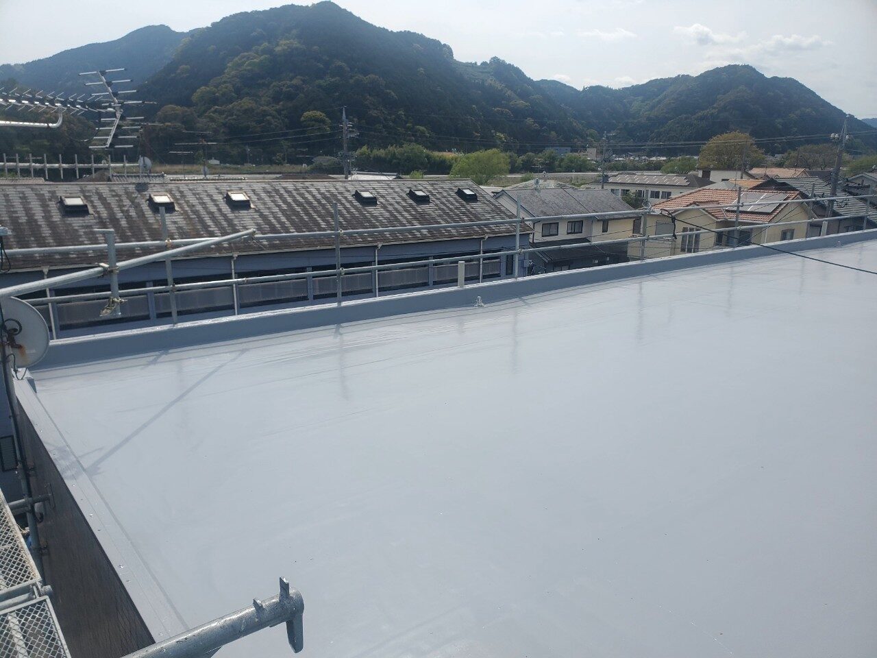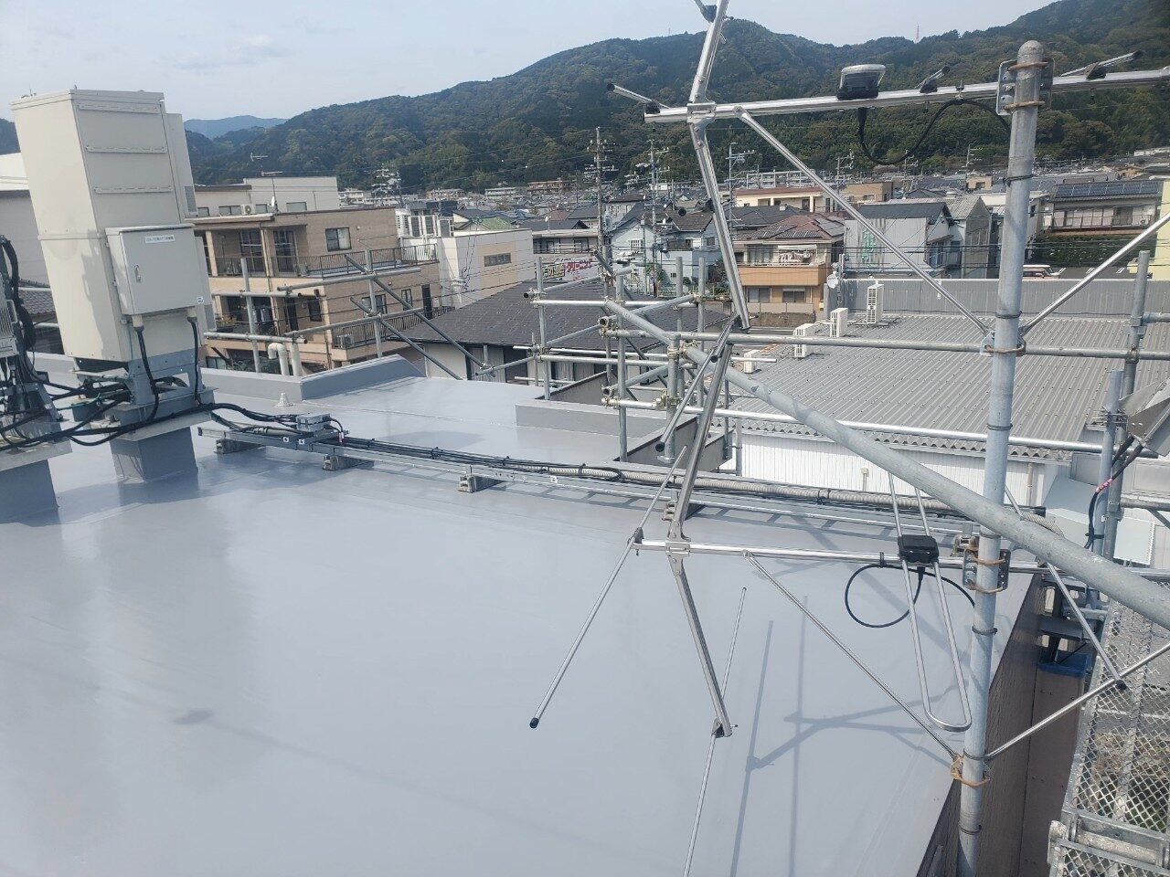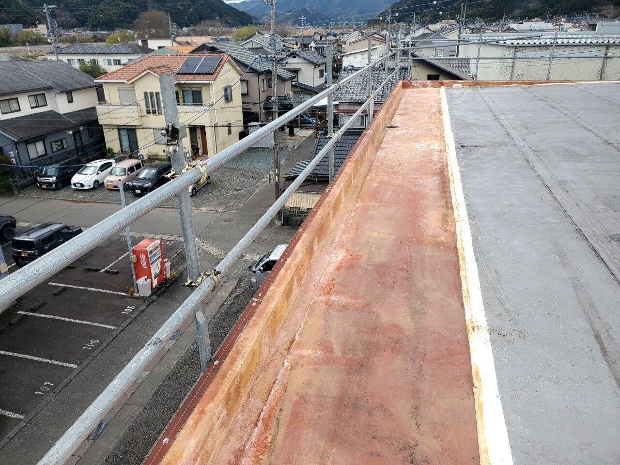 工事の内容 場所 静岡市駿河区 施工内容 屋上防水工事 使用材料 ウレタン防水 築年数 30年 工事期間 1カ月 既存防水層の劣化が確認されたため防水工事のご依頼をいただきました。 施工前 施工中 施工後