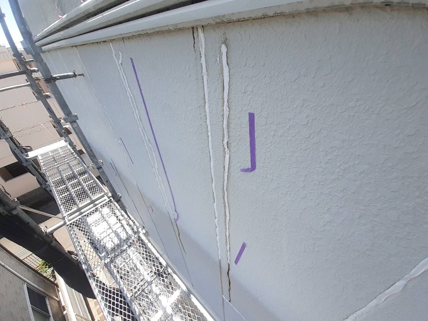 工事の内容 場所 静岡市葵区 施工内容 2階室内漏水 外壁クラック処理・塗装工事 使用材料 築年数 工事期間 2階、部屋がカビだらけになるとの事で訪問 外壁にクラックがあるのが下からの目視でも確認できたため足場架け調査 以前の業者がクラックの防水処理をせず塗装した状態でした。 多数クラックあり、クラック補修し塗装しました。 施工前 施工中 施工後