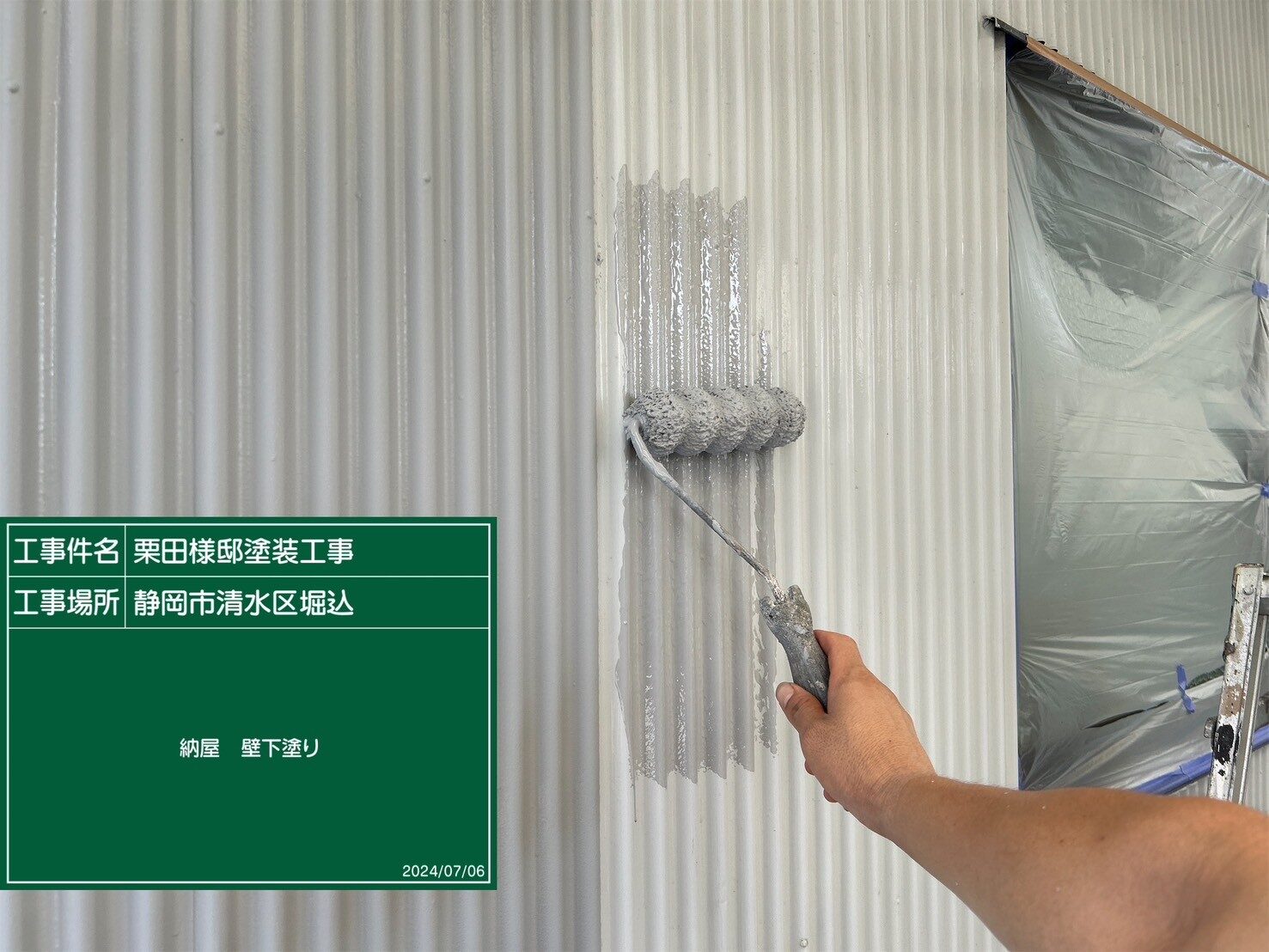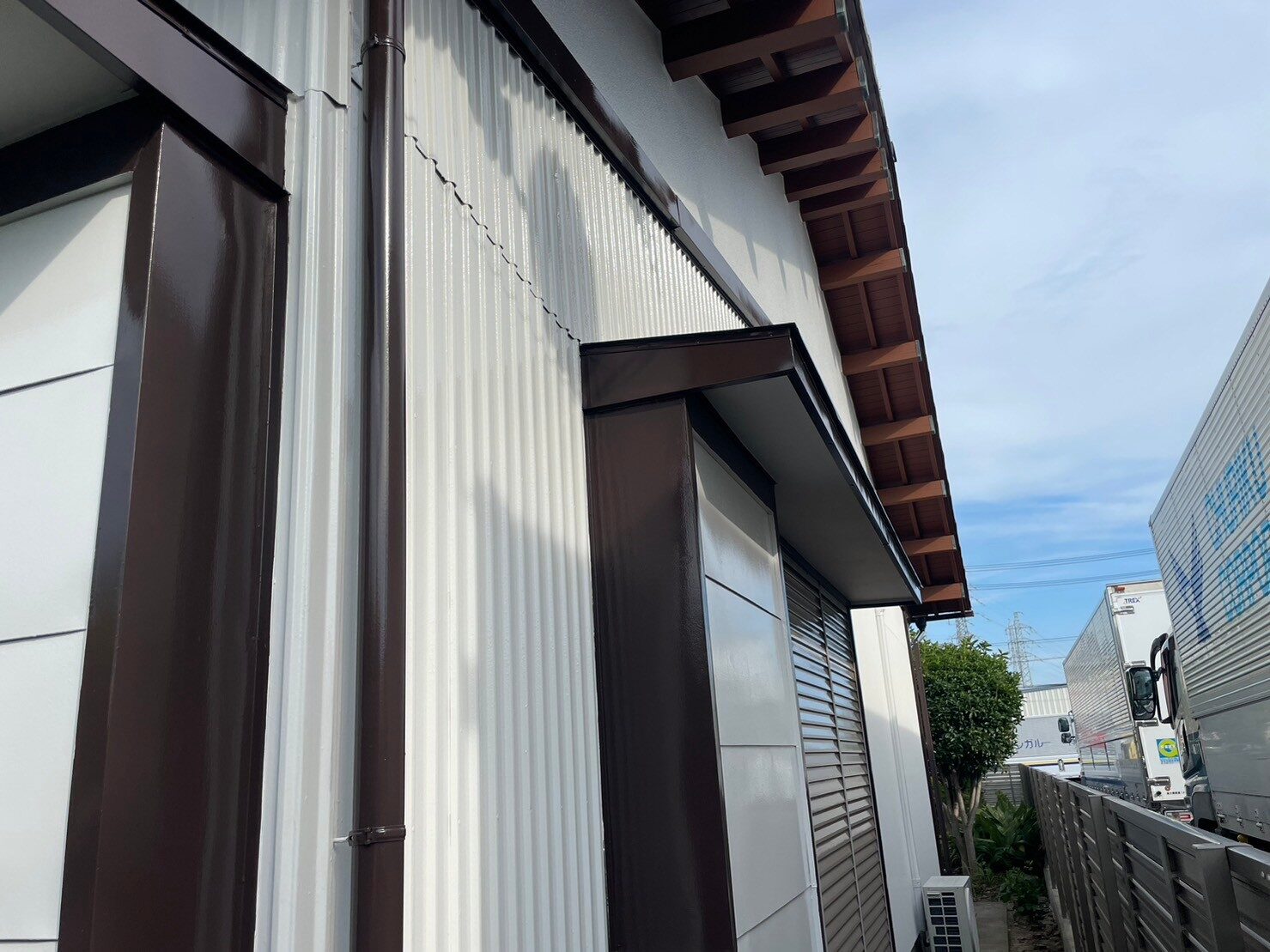 工事の内容 場所 静岡市清水区 施工内容 外壁塗装工事 漏水箇所板金工事 シーリング工事 使用材料 シリコン樹脂塗料 築年数 工事期間 1カ月 外壁塗装工事をおこないました。 雨漏りがあるとの事なので漏水試験を行い 雨漏り箇所の改修を行いました。 外壁トタン 下塗り:マイルドボーセイ 外壁トタン 上塗:クリーンマイルドシリコン 外壁モルタル 下塗り:ソフトリカバリー 外壁モルタル 上塗:水系ファインコートシリコン 付帯部:クリーンマイルドシリコン 玄関ポーチ:ガードラック 玄関廻りの木部の状態が良いため、 ガードラック(防腐剤)塗布としました。 施工前 施工中 施工後