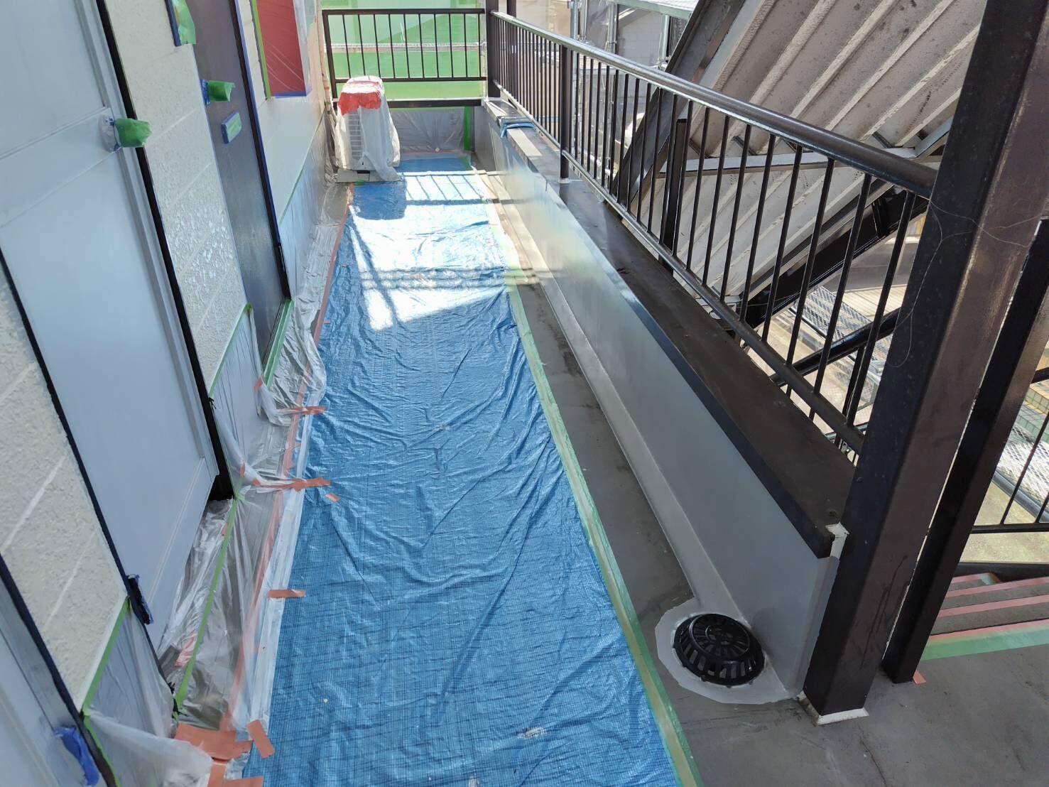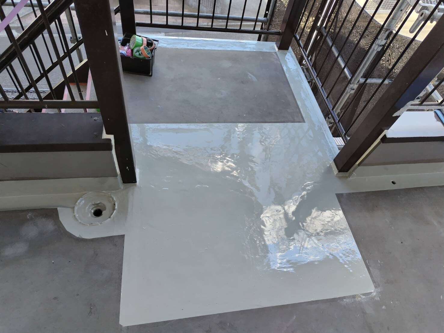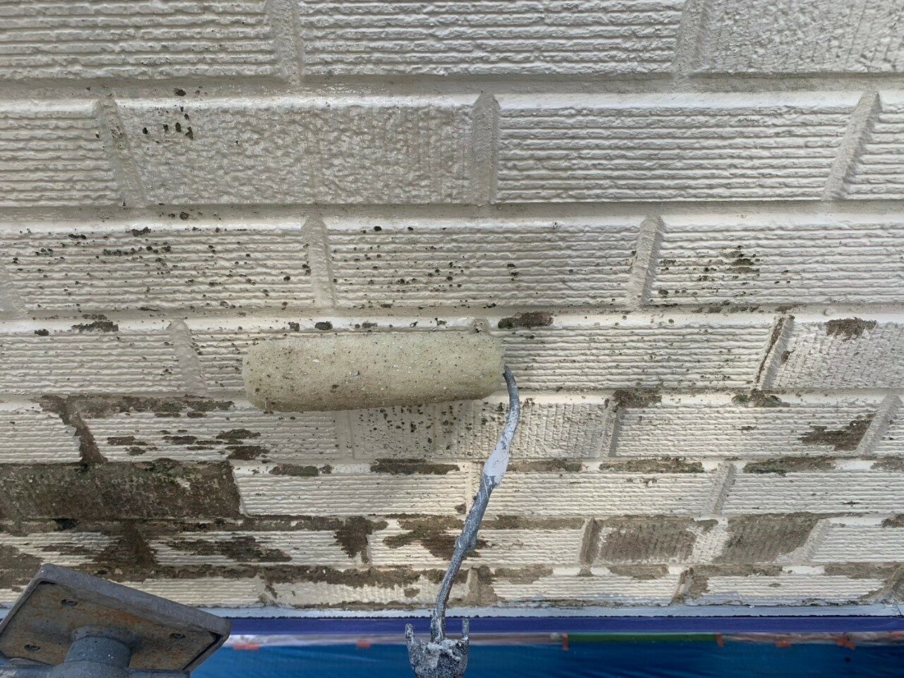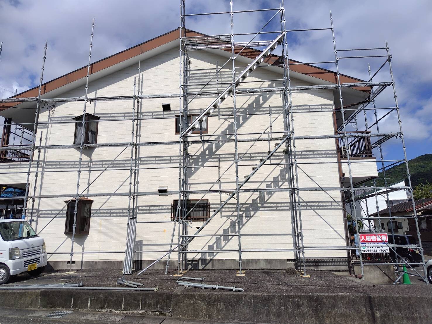 工事の内容 場所 静岡市 施工内容 外部改修工事 使用材料 シリコン樹脂塗装 ウレタン防水 築年数 30年 工事期間 1カ月 足場架け後、破損部が発見されたので 適正な処置を施しました。 施工前 施工中 施工後