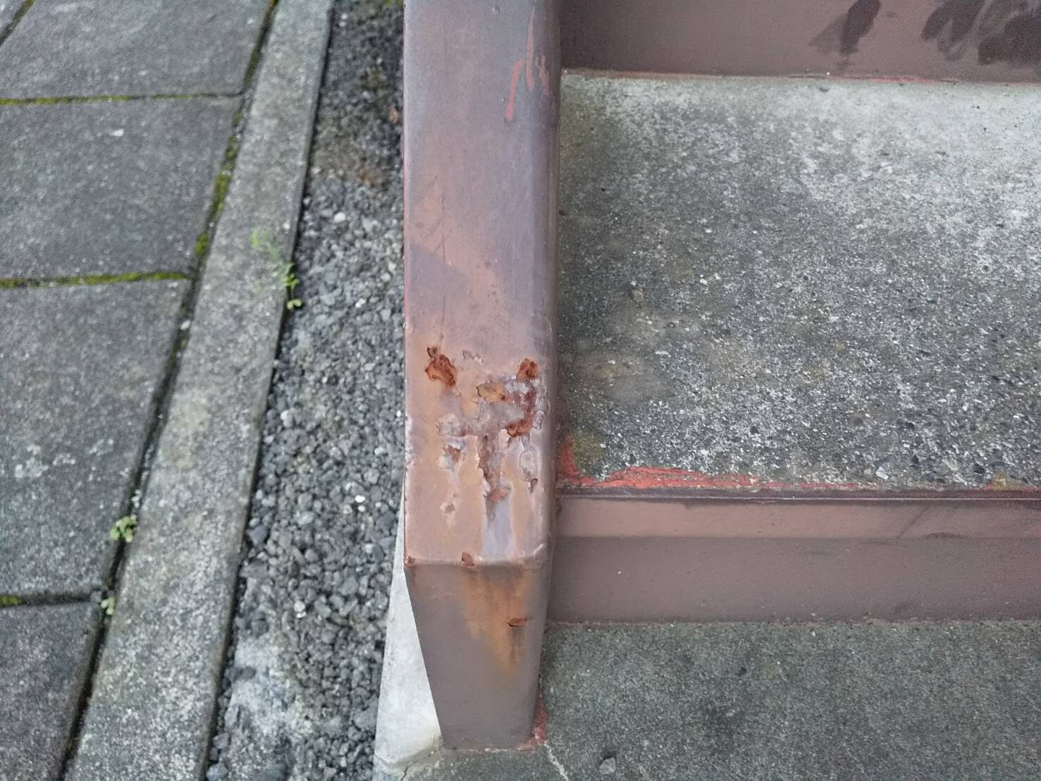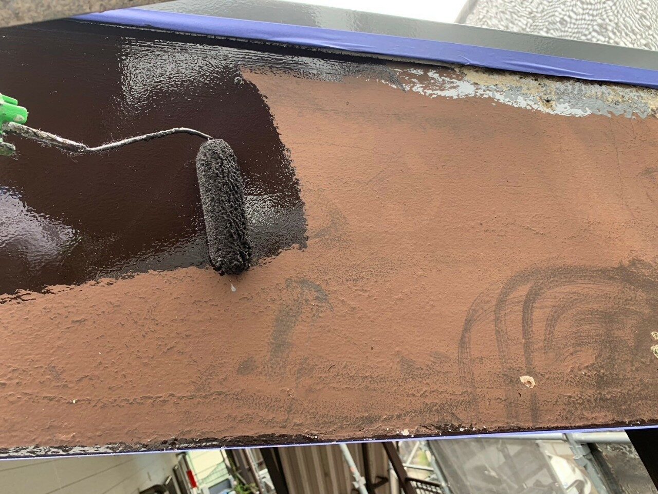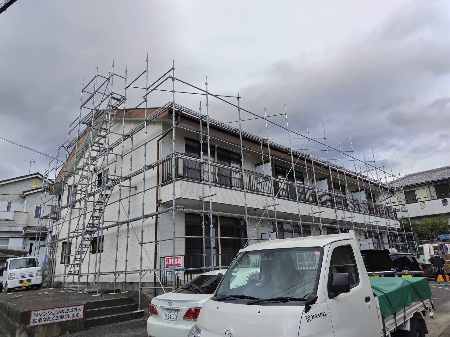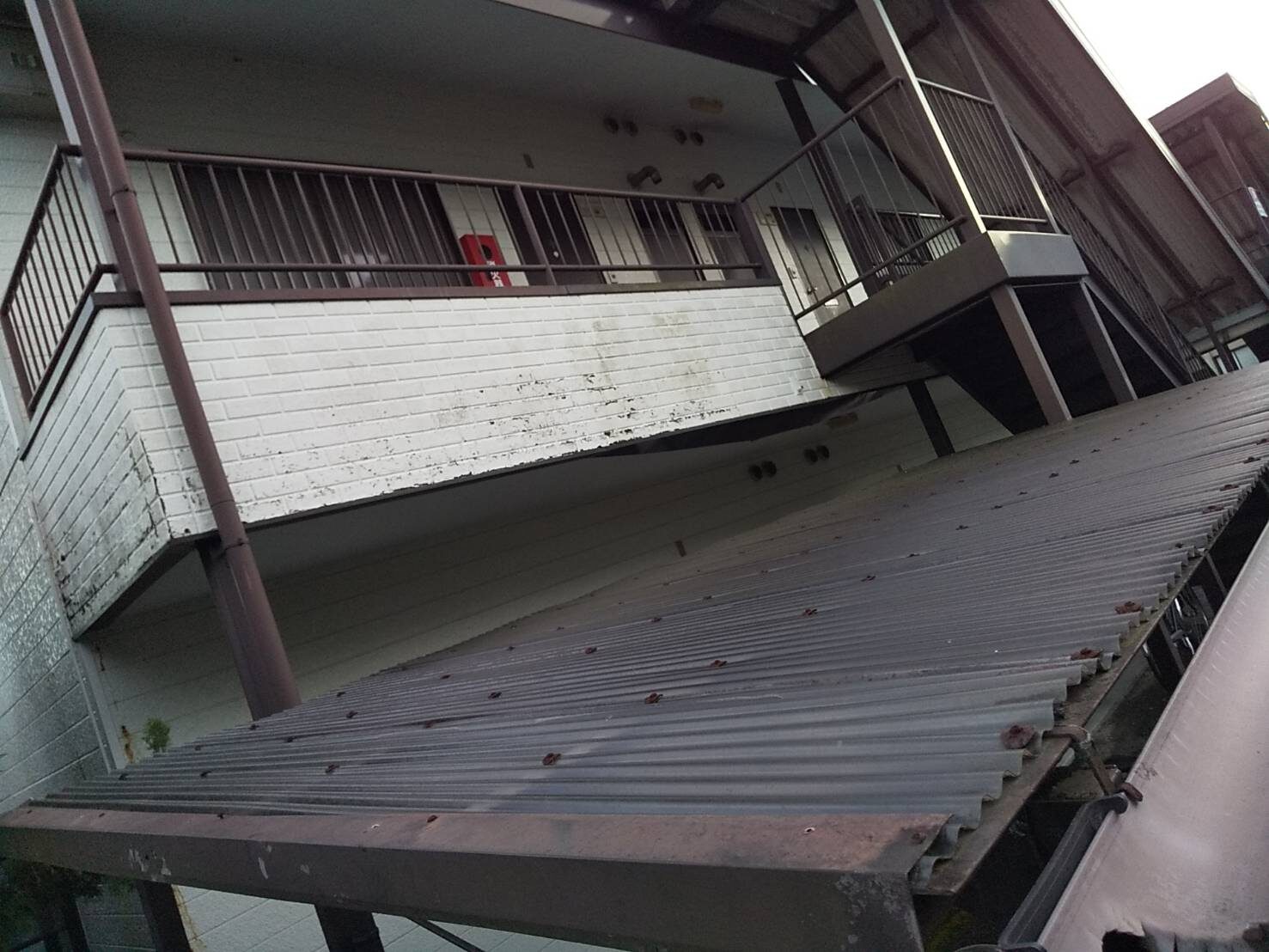 工事の内容 場所 静岡市 施工内容 外部改修工事 使用材料 シリコン樹脂塗装 ウレタン防水 築年数 30年 工事期間 1カ月 足場架け後、破損部が発見されたので 適正な処置を施しました。 施工前 施工中 施工後