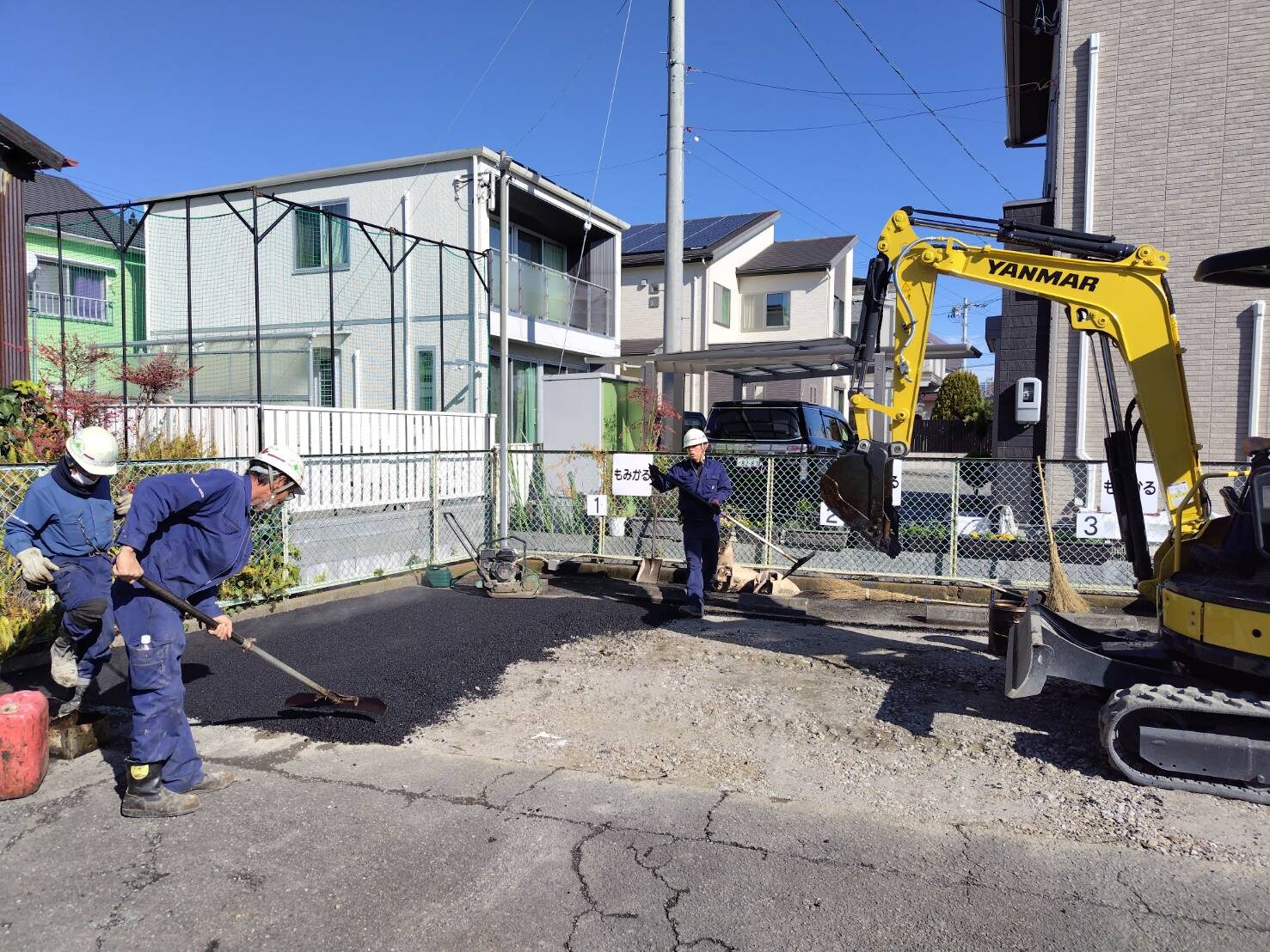 工事の内容 場所 静岡市駿河区 施工内容 駐車場舗装工事 使用材料 - 築年数 - 工事期間 1日 駐車場のアスファルト工事は、車の移動が 必要になり、天気が晴れの時に施工になります。 今回は、車の移動の予定と天気にも恵まれ、 予定通りに施工を完了することができました。 施工前 施工中 施工後