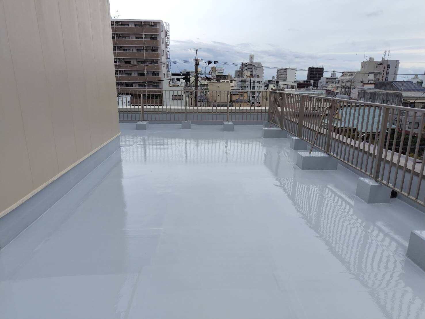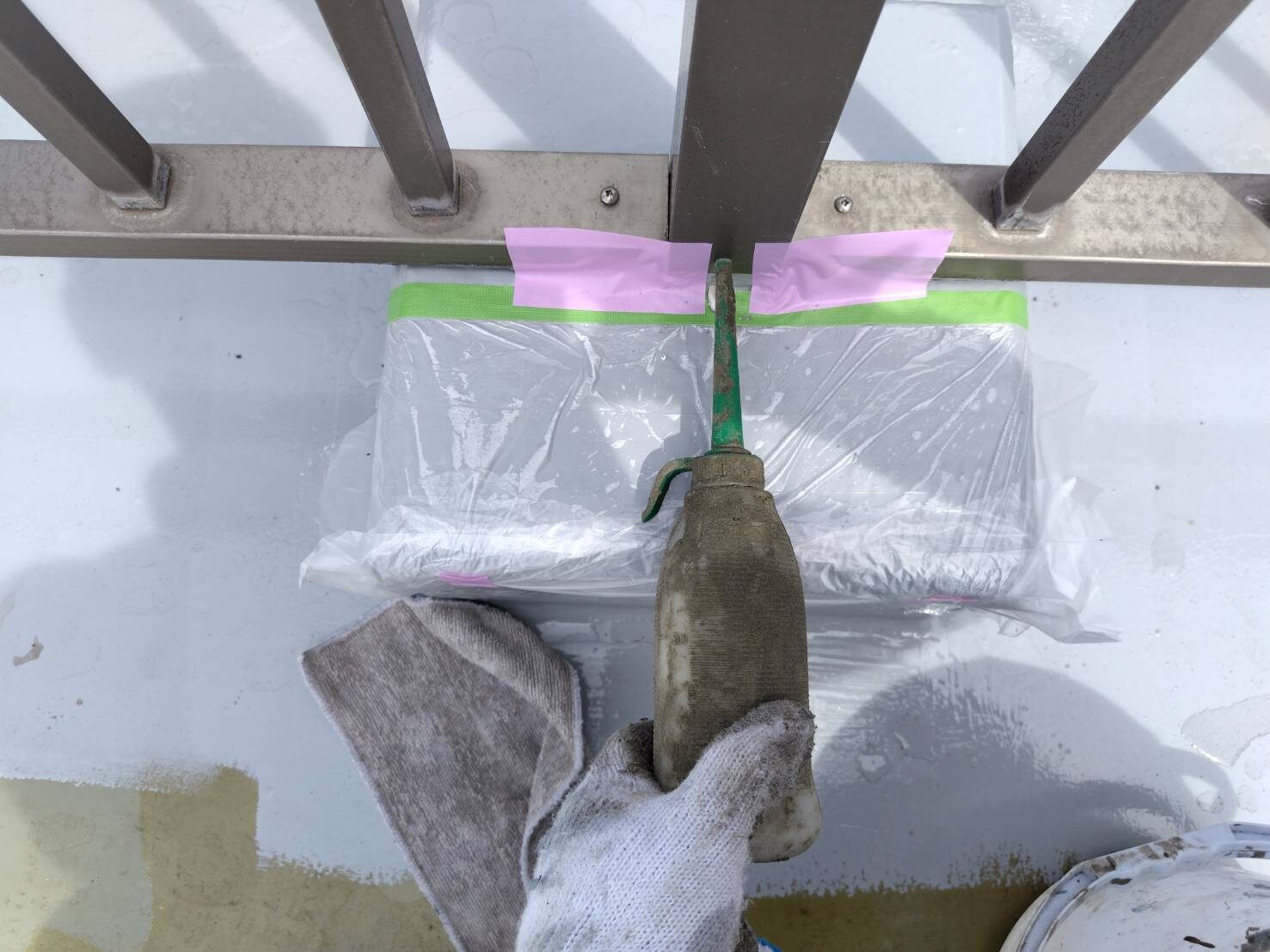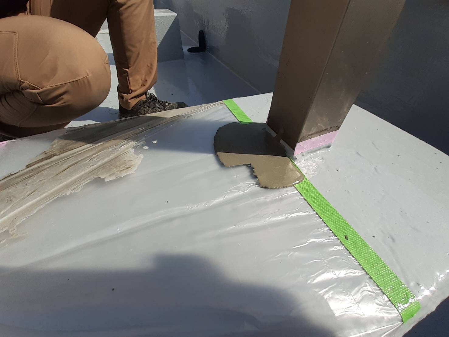 工事の内容 場所 静岡市葵区 施工内容 屋上防水改修工事 使用材料 - 築年数 - 工事期間 - 建物の漏水はまだない様ですが、立上り部分に水が入っている箇所が数箇所あり ウレタン塗膜も薄かったので立上りウレタン塗膜防水施工。 手摺架台も、手摺が架台に当たって、手摺下がウレタン塗膜防水が施工されていなかったので手摺を一度外して、ウレタン塗膜防水施工しました。 手摺にはグラウト注入しました。 平場はトップコートのみ施工。 施工前 施工中 施工後