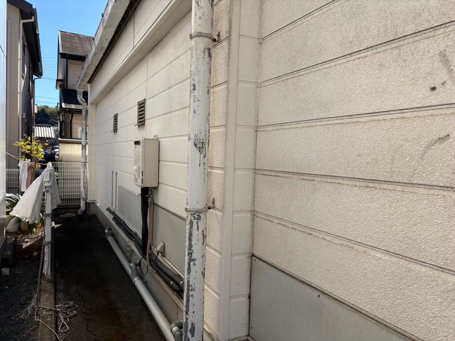 工事の内容 場所 静岡市駿河区寺田 施工内容 外壁クラック補修 シーリング工事 塗装工事 使用材料 - 築年数 - 工事期間 2週間 外壁クラックが多く見られたので クラック補修を行いました。 天気が良くない日が続き工期が 伸びてしまいました。 施工前 施工中 施工後