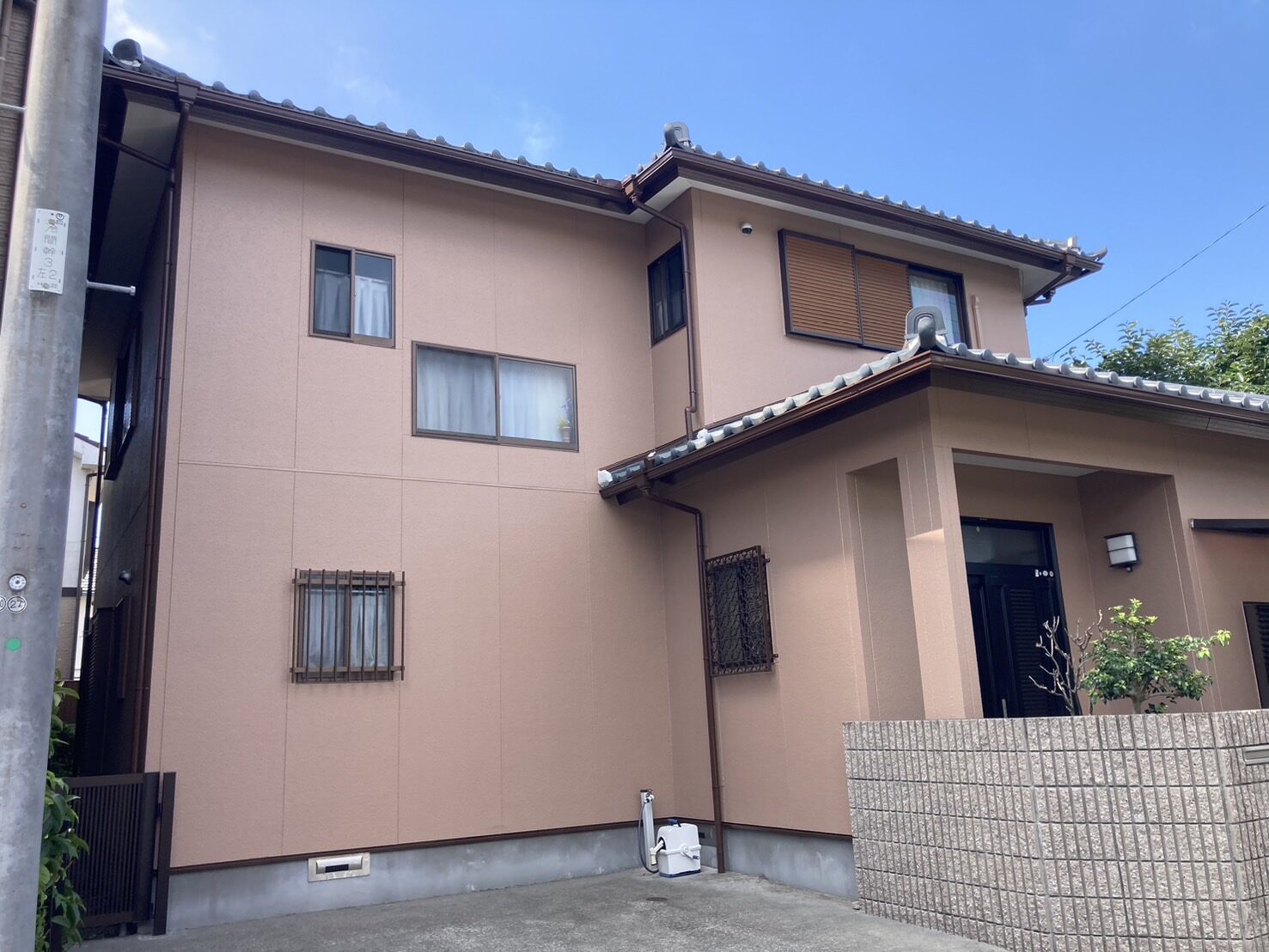 工事の内容 場所 静岡市葵区 施工内容 外壁塗装工事 使用材料 外壁:水系ファインコートシリコン パーツ:クリーンマイルドシリコン 築年数 35年 工事期間 3週間 施主様より、新築時の外壁の色にしたいと要望があり シミュレーションを使用しながら色決めを行いました。 完成後も大変喜んでいただけました。 施工前 施工中 施工後