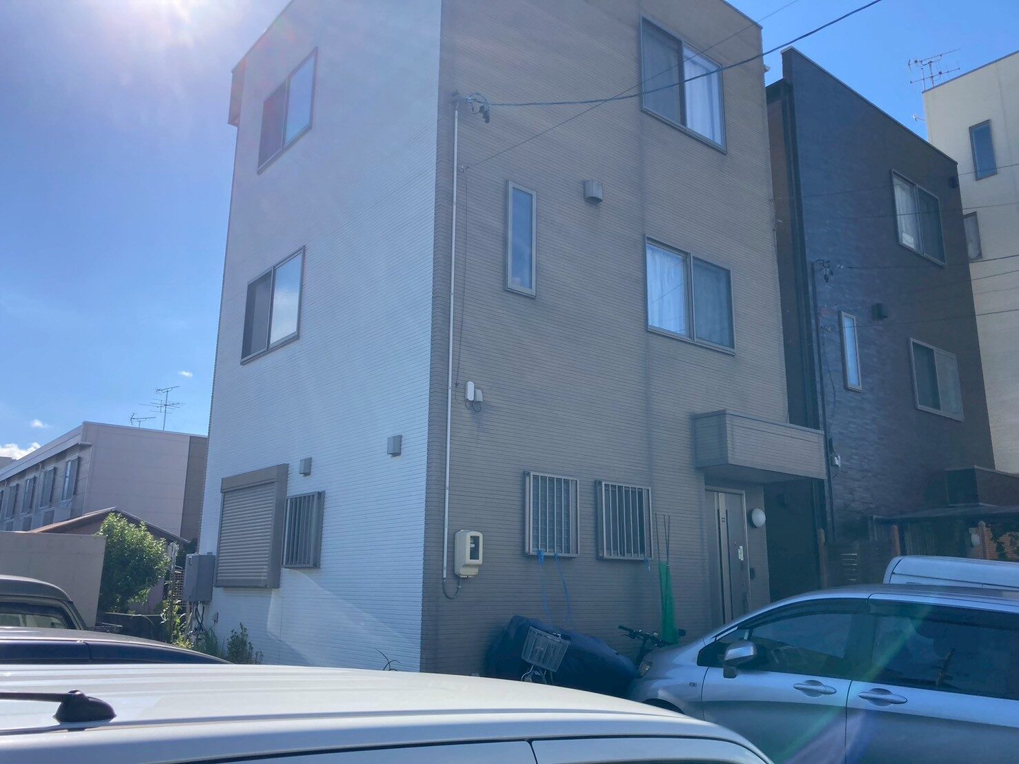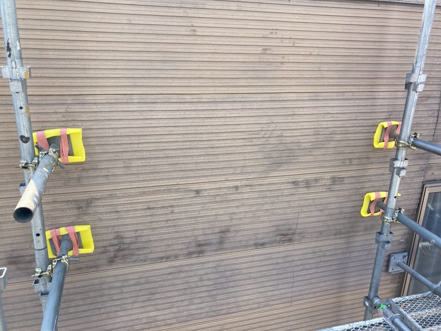 工事の内容 場所 静岡市葵区 施工内容 外壁一部張替 外壁一面塗装 使用材料 ロイヤルシリコン 築年数 20年 工事期間 1カ月 シーリングが劣化してそこから水が浸入し外壁を傷めていました。 崩落寸前だった為、早急に足場を組み崩落しないように処置をしました。 破損部分を撤去し、新規で張替させていただきました。 一部張替だった為、色の差が出ないように一面塗装し仕上げました。 施工前 施工中 施工後