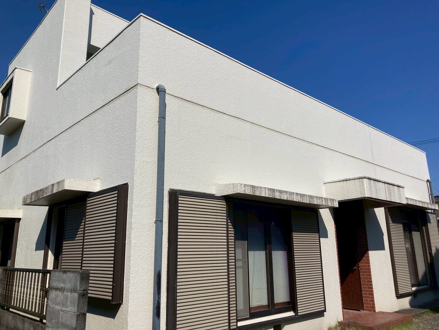 工事の内容 場所 静岡市葵区 施工内容 屋上防水保護塗装 ベランダ床防水保護塗装 外壁塗装 外壁目地シーリング 開口廻りシーリング 使用材料 外壁:ロイヤルシリコン 築年数 30年 工事期間 1カ月 定期的にメンテナンスを行っている様子で下地の痛みがあまり見受けられませんでした。 日当たりもよく紫外線による劣化が予想されるので定期的なメンテナンスをお勧めします。 次回は工場の屋根塗装を検討していただいています。 笠木天端や庇天端の塗装の劣化が確認されたため天端関係については防水型複層塗材にて施工をしました。 (長期の防水機能がきたいできます。) 施工前 施工中 施工後