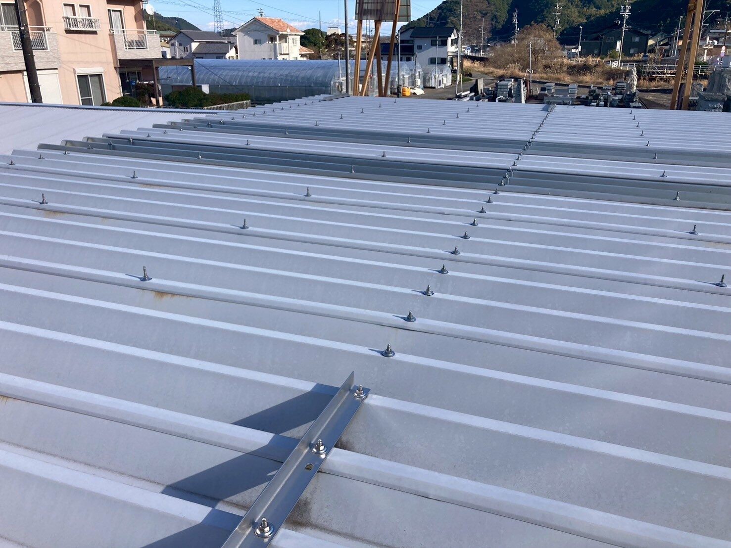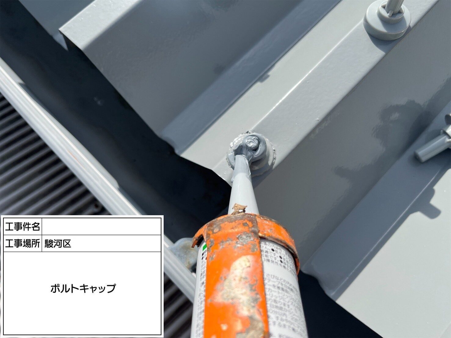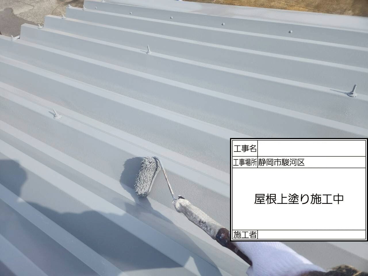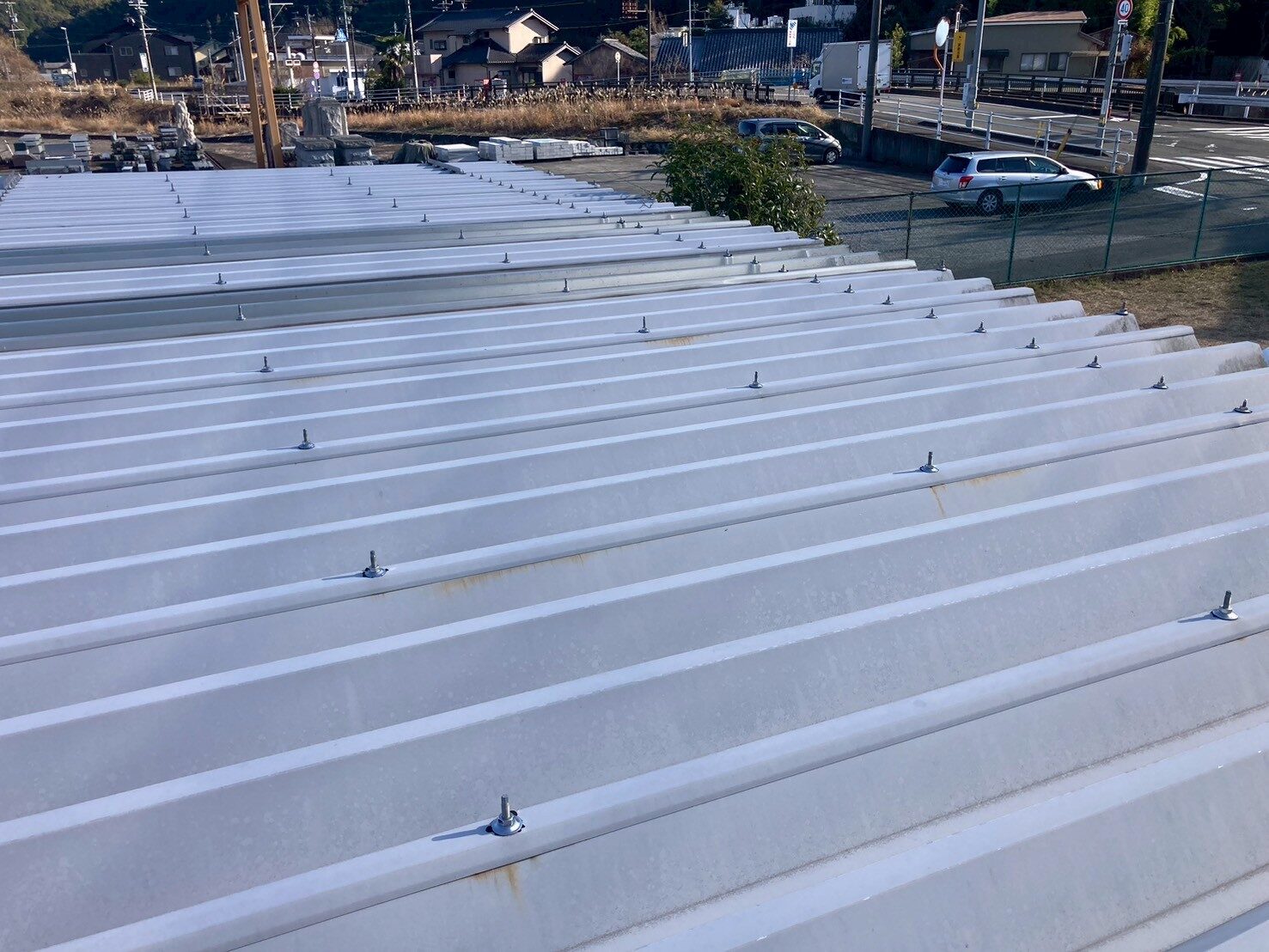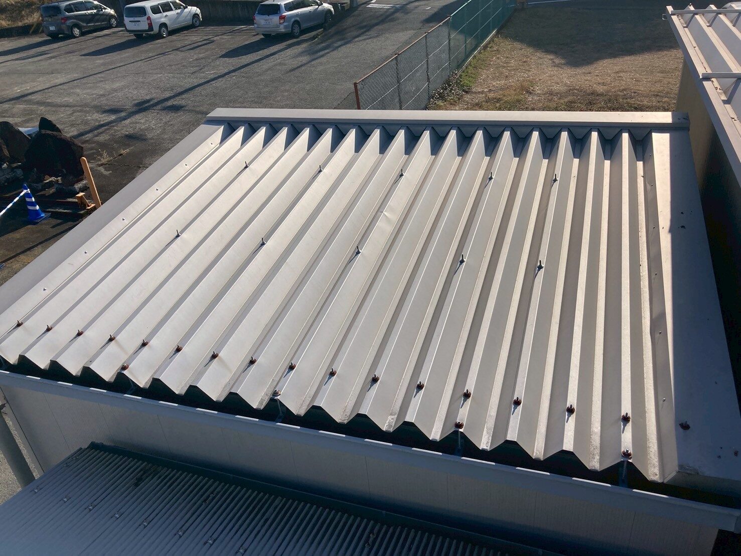 工事の内容 場所 静岡市 施工内容 折半屋根 塗装工事 ・ケレン清掃 ・シリコン樹脂塗装 ・フックボルトにキャップ取付 使用材料 築年数 工事期間 2026年2月 経年により劣化が見えてきた工場折半屋根の塗装工事を行いました。 ケレン清掃の上、錆止めを塗布してシリコン樹脂塗装でリフレッシュ 漏水の原因となるフックボルト部はシールを施してキャップを取付、 防水性を高めました。 施工前 施工中 施工後