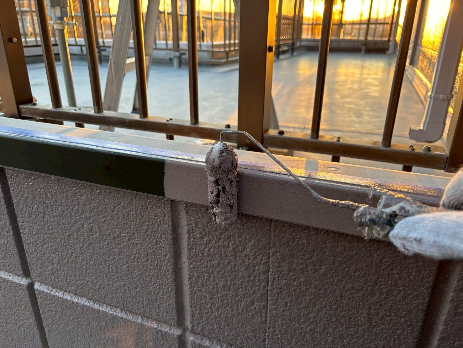 工事の内容 場所 静岡市駿河区 施工内容 外壁塗装工事 ・シール ・外壁塗装 ・屋上ベランダ防水トップコート ・電気器具交換 使用材料 ロイヤルシリコン 築年数 築35年 工事期間 2026年2月 漏水を防ぐため外壁のクラック補修を念入りに行いました。 屋上・ベランダの塩ビシート防水にリフレッシュ工法を施したことで 防水効果を維持することができます。 施工前 施工中 施工後